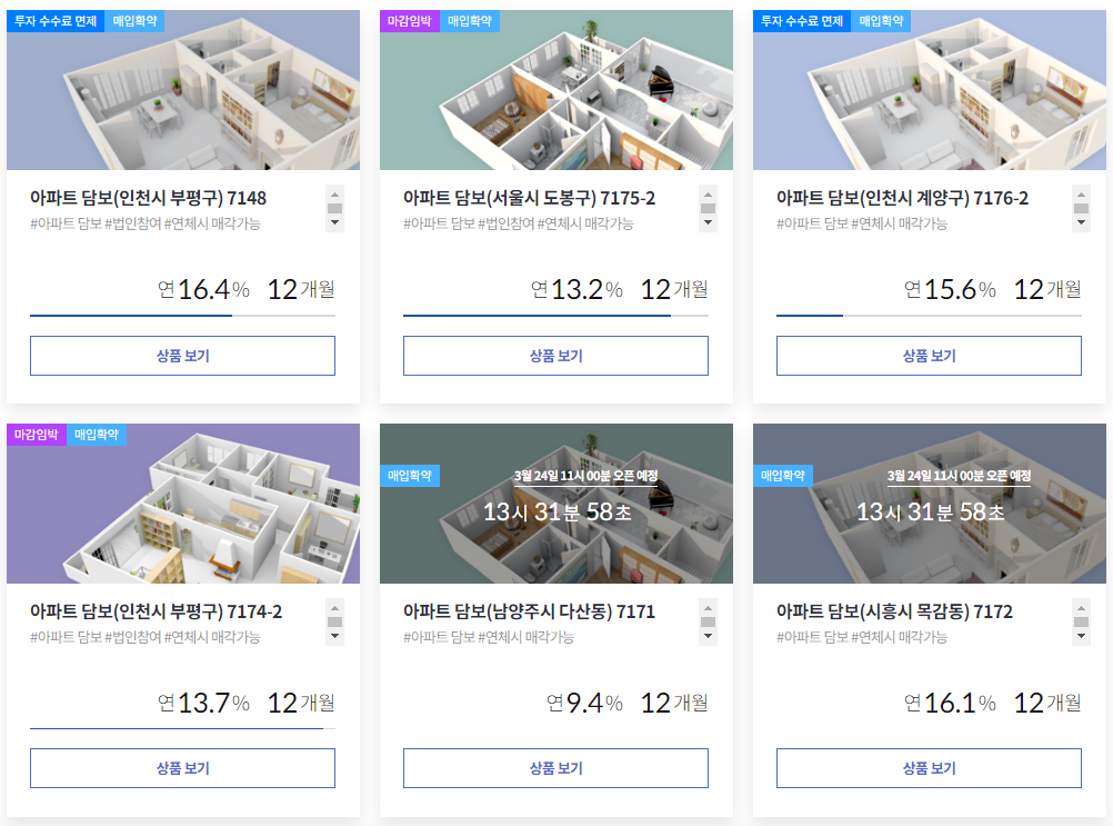 주택담보대출은 1천만원까지 투자가 가능하다.