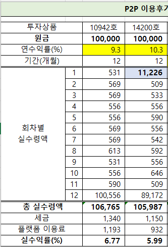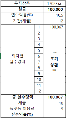 세금과 플랫폼 이용료를 제외한 실수익율은