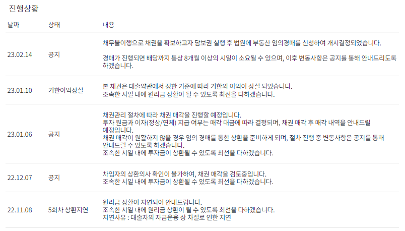 5회차(22.11.08)부터 상환이 지연되기 시작했으며,