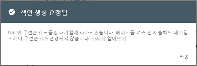 정상적으로 색인 생성이 요청되었다.
