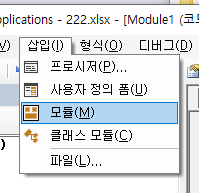 '삽입 → 모듈'을 선택한다.