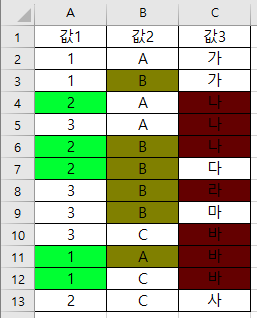VBA 각각의 값에 다른 색을