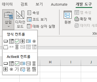 [ 개발도구 → 삽입 ]으로 가면