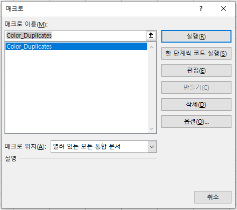 생성한 매크로를 '실행'시킨다.