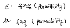 이때, 입실론과 뮤는 각각 유전율, 투자율을 나타낸다.