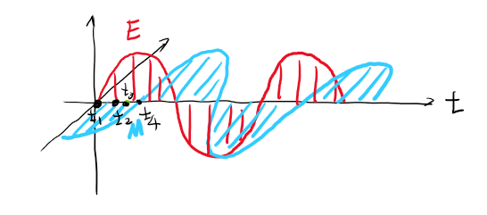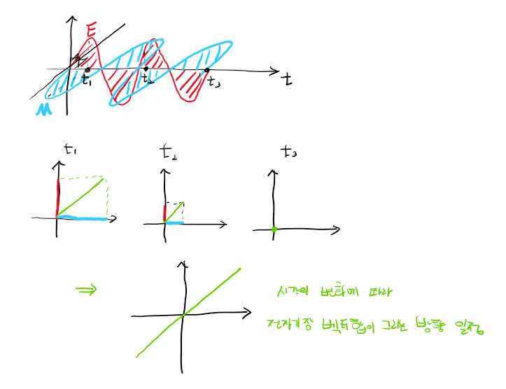 전자기장의 벡터합이 시간에 따라 직선으로 진동한다.