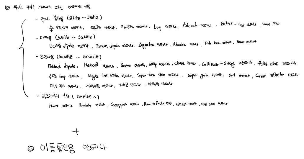 장·중파용 안테나(3kHz~3MHz), 단파용 안테나(3MHz~30MHz),