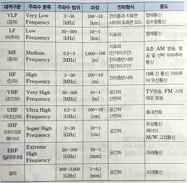 무선 주파수 대역은 위의 그림처럼 구분이 되는데,