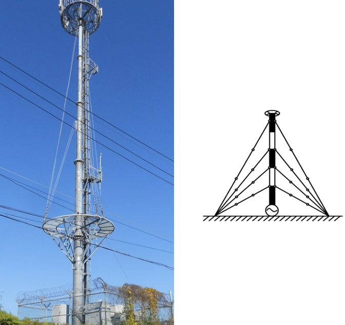 철주나 철탑을 설치하여 꼭대기쪽으로 거미줄 모양의 도선을 친 형태이다.