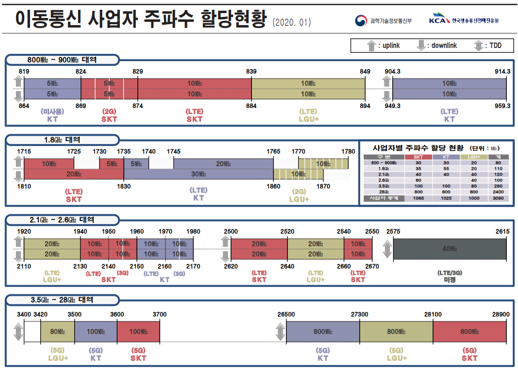 26500~28900[MHz](=28GHz 대역)은 5G로 사용된다.