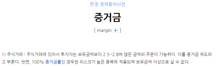 - 증거금 : 주식을 구매하기 위해 예탁한 금액