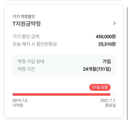 SKT를 기준으로 휴대폰 약정남은 기간이 얼마나 남았는지,