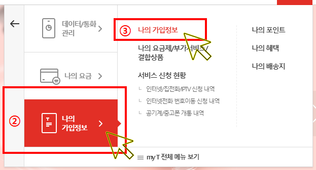 ② my T → [나의 가입 정보] → [나의 가입 정보]