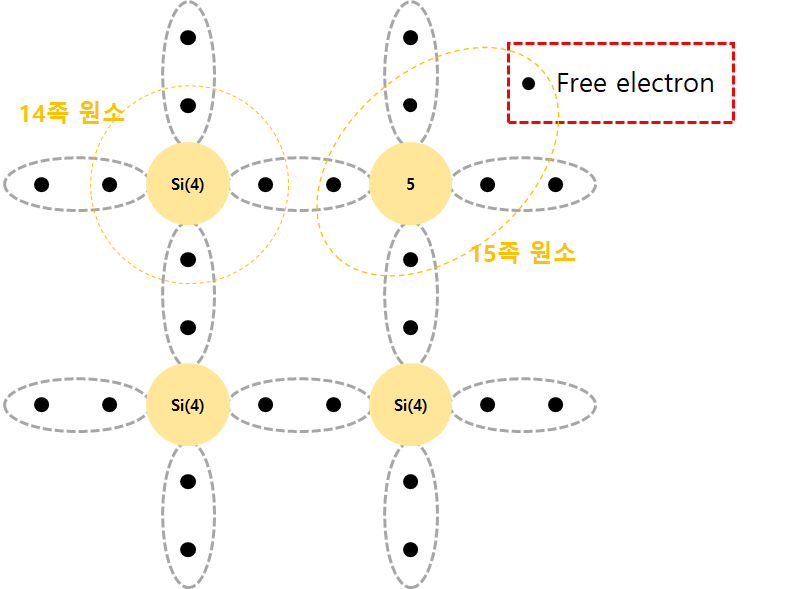 마찬가지로 진성반도체 사이에 15족 원소가 도핑되면