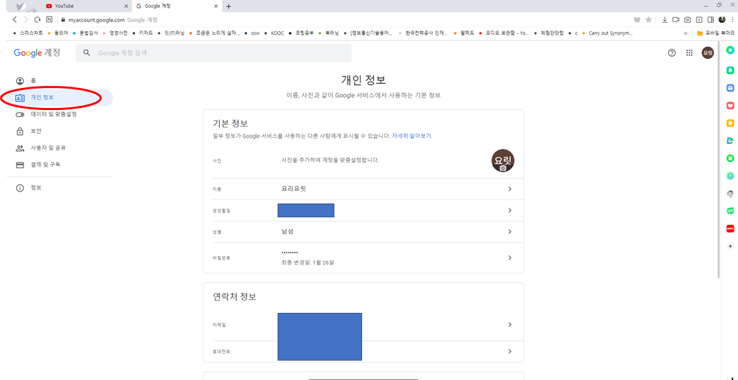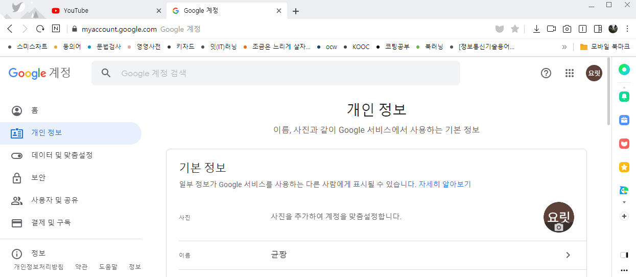 유튜브(구글)화면 오른쪽 상단에 보면