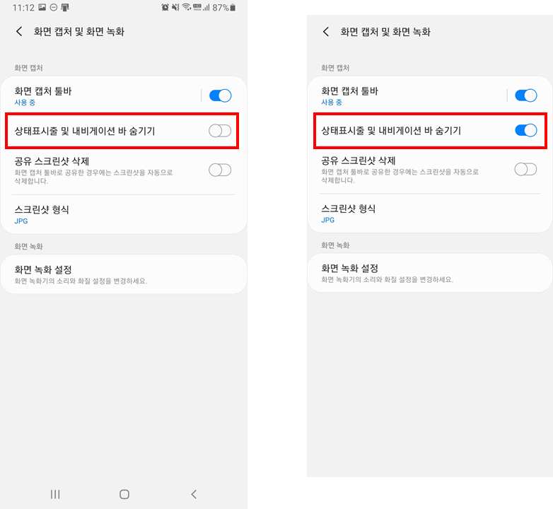 캡쳐할때 상태표시줄과 네이게이션바를