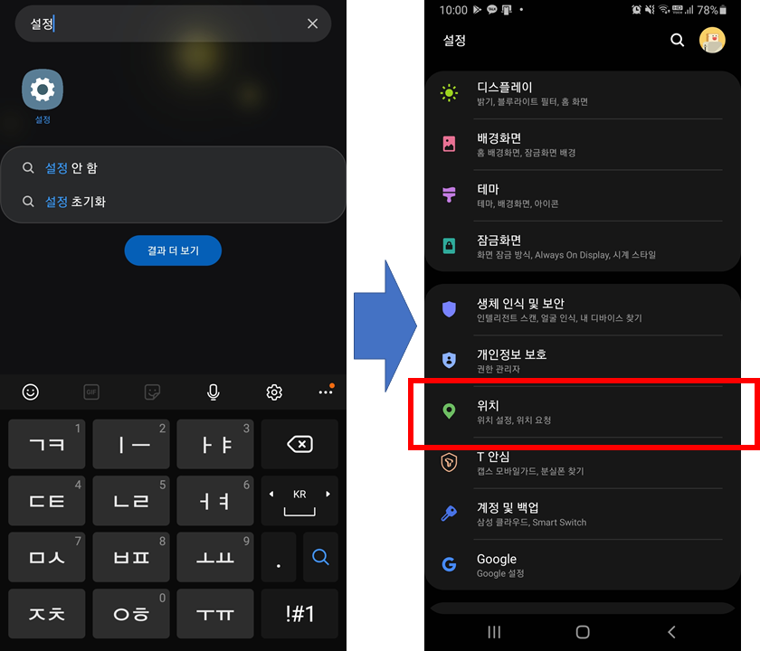 위의 그림에서 보면 '위치 서비스' 메뉴에서