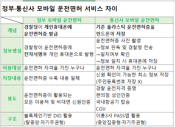 3. 정부공인 vs 통신사 모바일 운전면허 비교