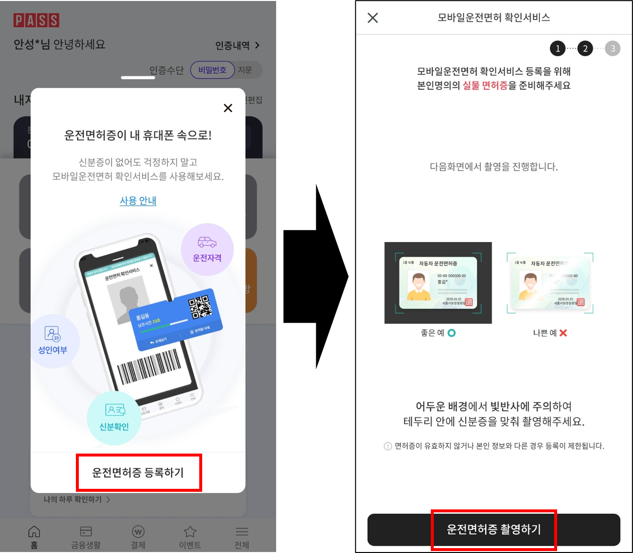 운전면허증을 촬영하면 운전면허증이