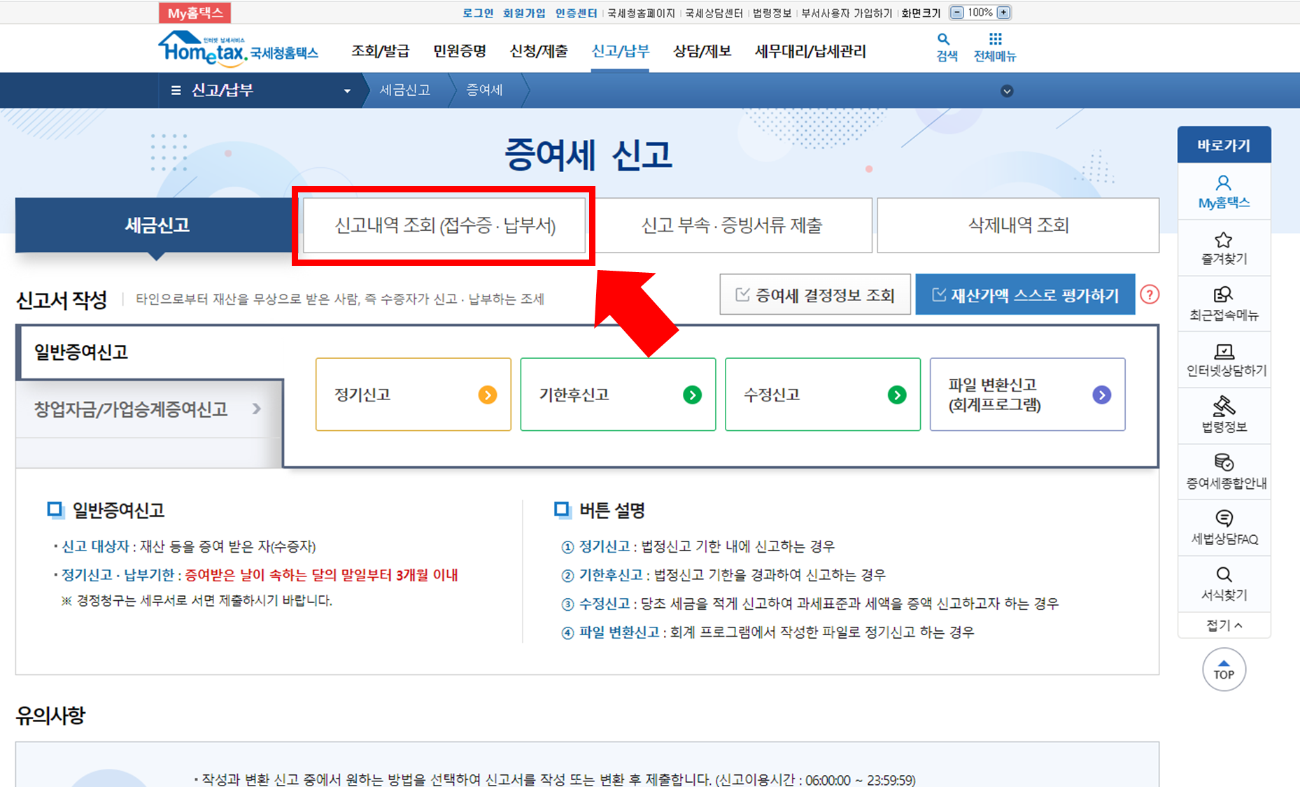이때, 법정신고 기한 내(3개월 이내)라면 '정기신고',