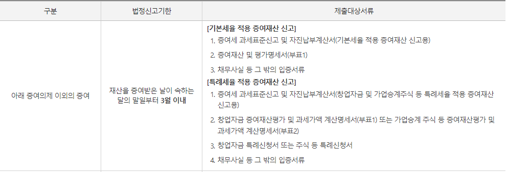 - 증여세 신고 일자