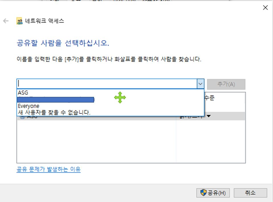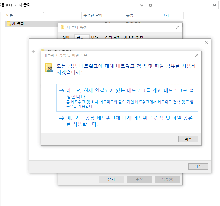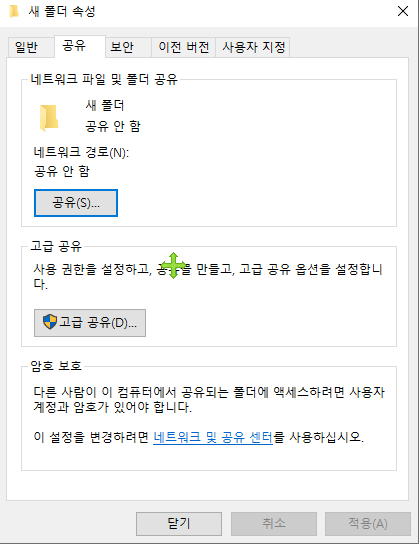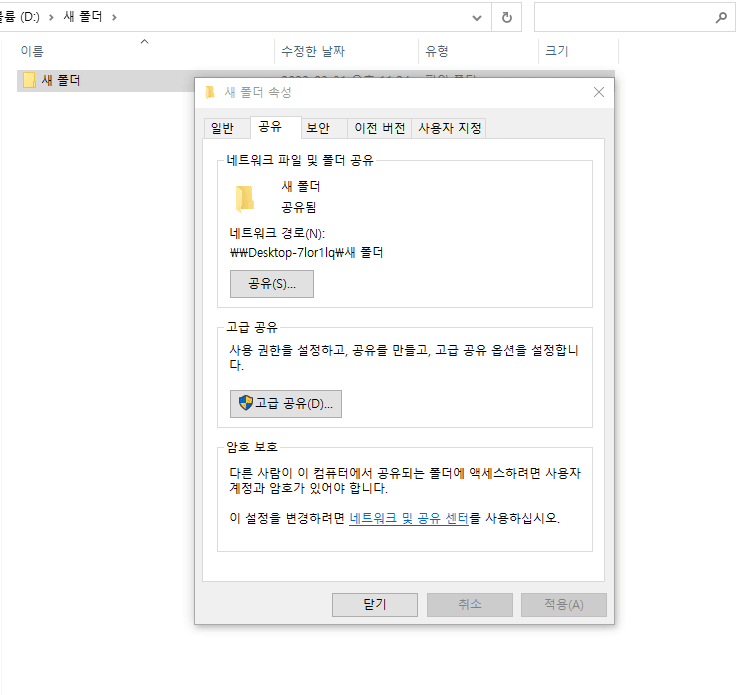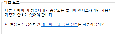 참고로, '암호 보호 공유'가 켜져있는 경우