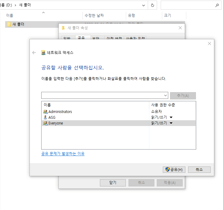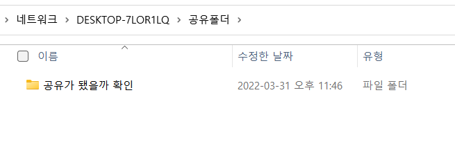 '공유가 됐을까 확인'이라는 이름의 폴더를 하나 만들었다.