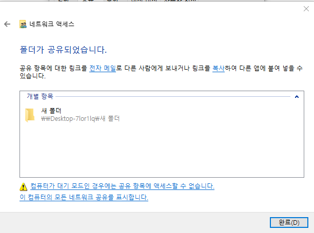'폴더가 공유되었습니다.'라는 화면을 볼 수 있다.