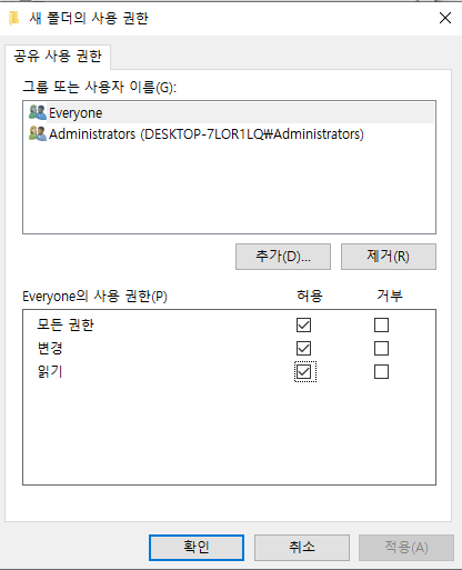 여기까지 했으면 공유 폴더가 만들어졌다.