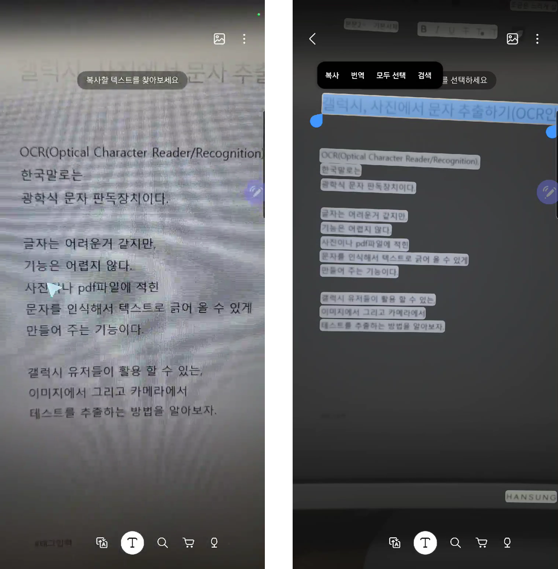 빅스비 비전의 OCR 기능을 사용해서