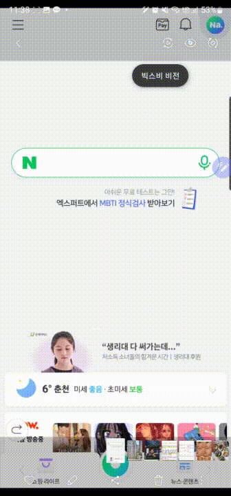▲샘플로 네이버 어플 홈 화면을 캡쳐했다.