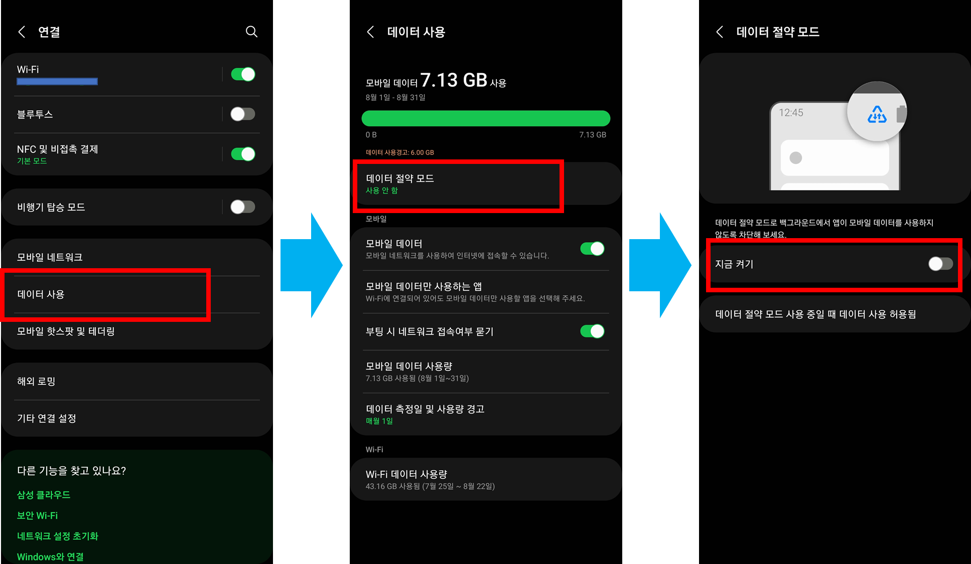'데이터 절약 모드'라는 항목을 볼 수 있는데