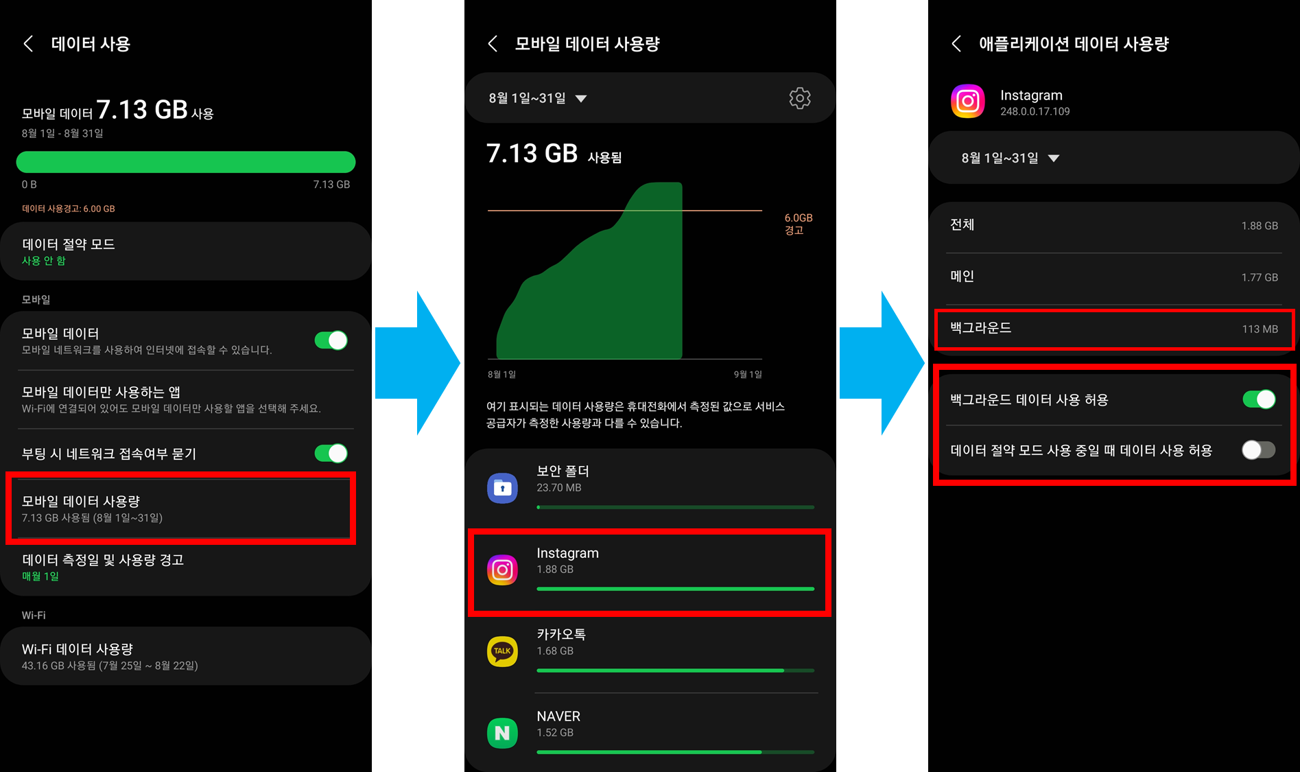 백그라운드에서 사용되는 데이터를 볼 수 있으며