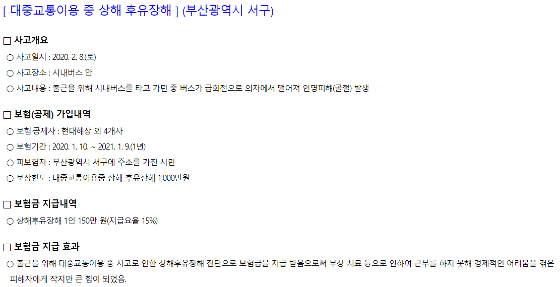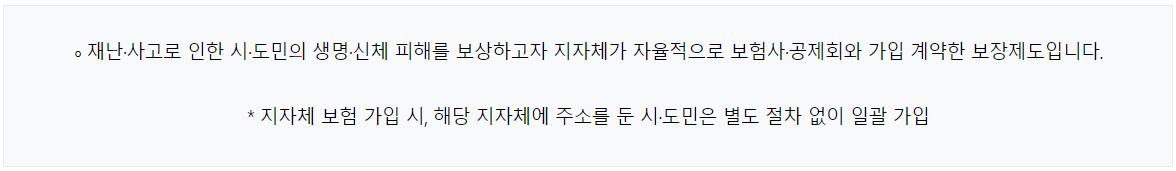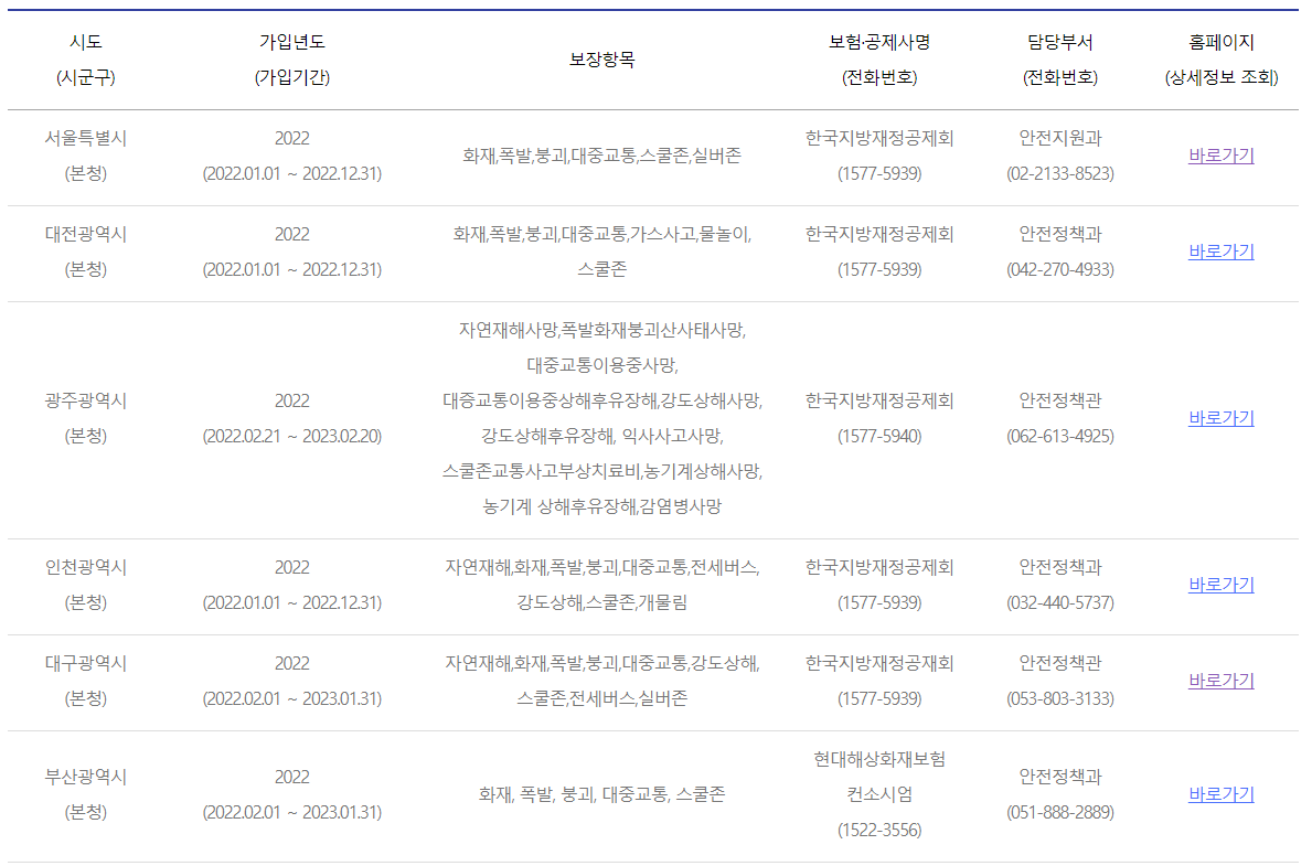 서울시 외에 다른 지자체의 시민안전보험 관련 내용은