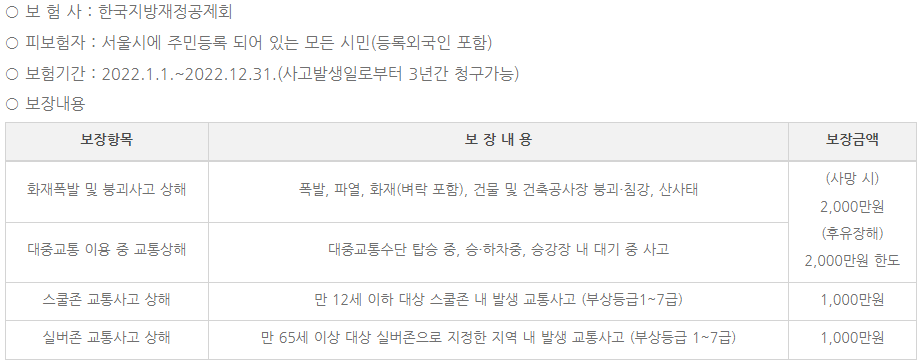 2. 시민안전보험 보장항목, 보장 금액, 청구방법